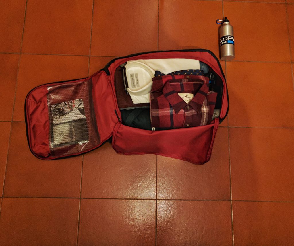 Sono riuscito a farci entrare tutti questi oggetti senza alcuna difficoltà. Riuscendo ad avere ancora qualche spazio. Come potete vedere dall’immagine, l’unica cosa che non sono riuscito a far entrare è la mia bottiglia dell’acqua. Uno zaino da viaggio smart senza una tasca per portare una banalissima bottiglia/borraccia? Ebbene si. Una grave pecca, la più grave.