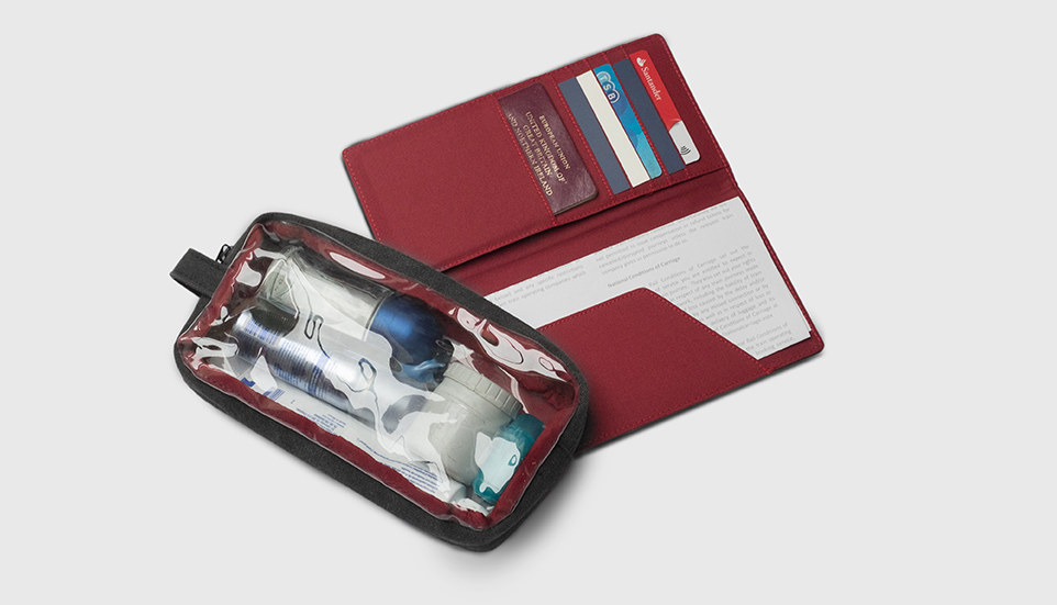 - Porta documenti: costriuto con gli stessi materiali dello zaino e con una protezione RFID.