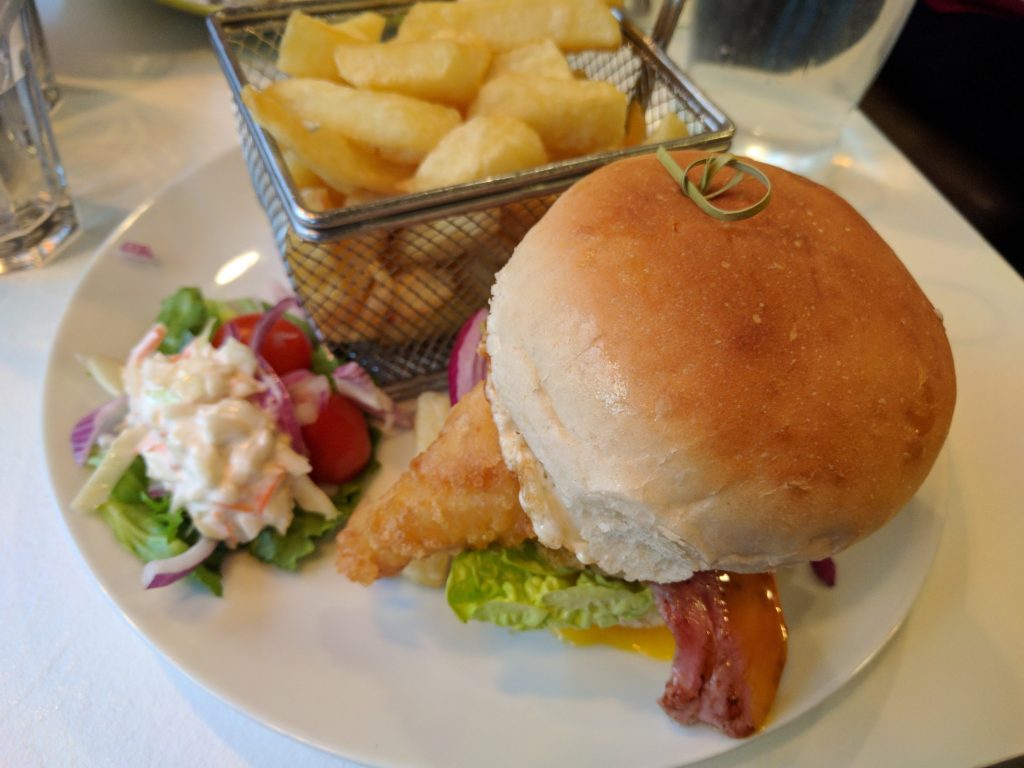 Io ho ordinato un Fisherman Burger (foto) per 12£. Un Fish&Chips standard costa solo 9,95£.